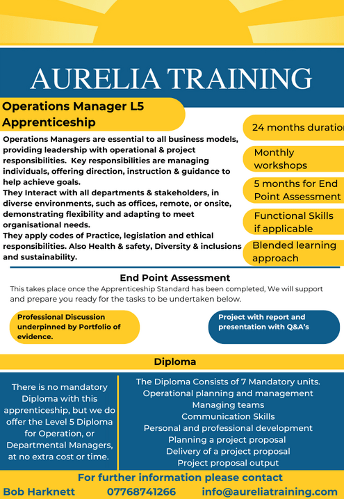 For further information on the standard content please visit Operations / Departmental Manager L5