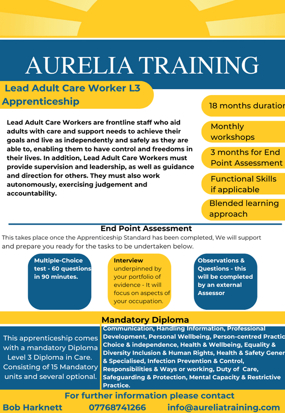 For further information on the standard content please visit Lead Adult Care Worker Level 3