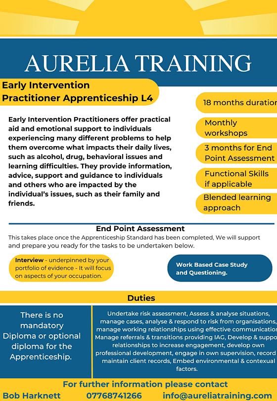 For further information on the standard content please visit Early Intervention Practitioner Level 4
