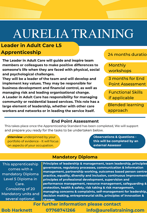 For further information on the standard content please visit Leader in Adult Care Level 5