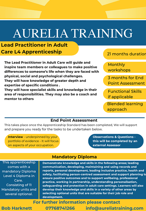 For further information on the standard content please visit Lead Practitioner in Adult Care Level 4