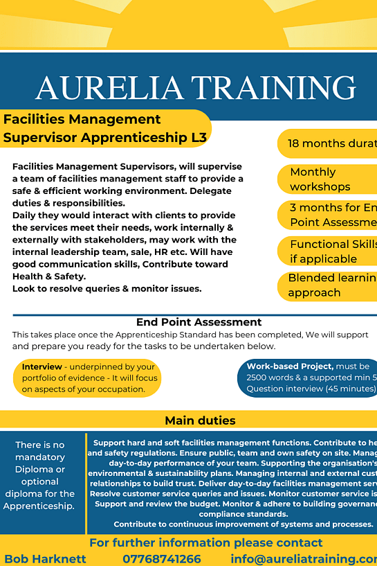 For further information on the standard content please visit Facilities Management Supervisor L3