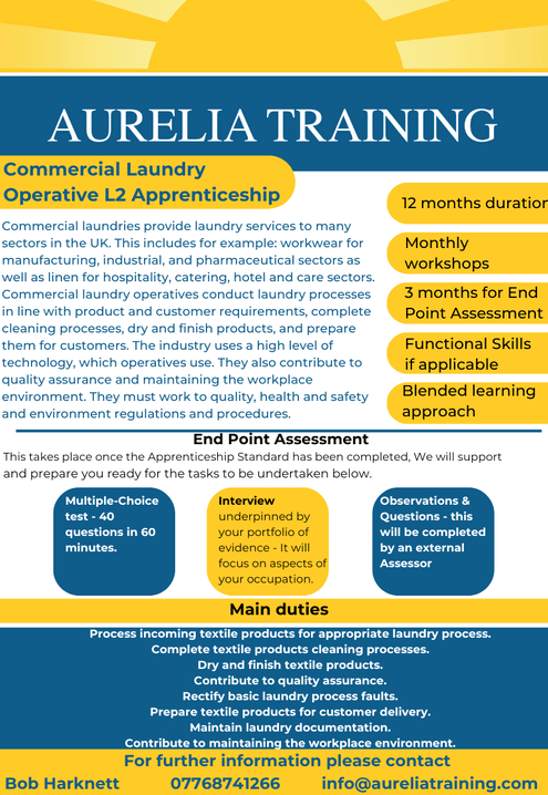 For further information on the standard content please visit Commercial Laundry Operative Level 2